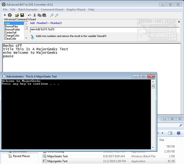 Advanced BAT to EXE Converter allows you to convert and compile batch files (.bat, .cmd) to standalone EXE format in a straightforward fashion.