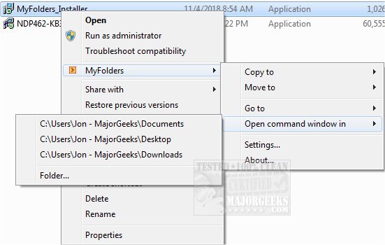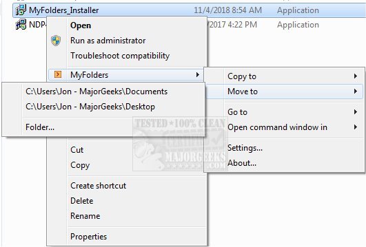 MyFolders enables simplified moving or copying files to a folder location of your choosing.