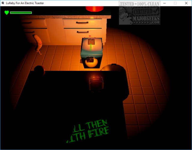 Lullaby for an Electric Toaster is a 3D horror/action game where you, as a flaming-toast-launching electric toaster must find your way across a dark and bizarre kitchen dreamscape.