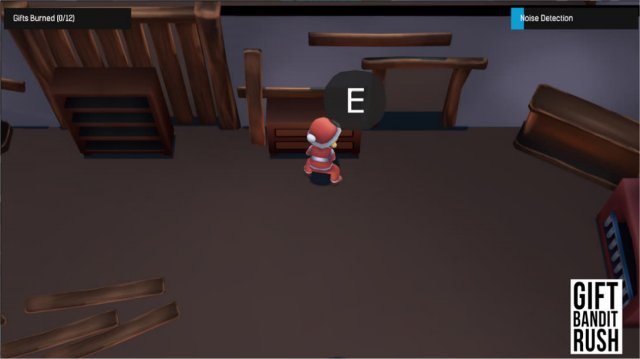 Gift Bandit Rush is a portable, freeware game where you hate Christmas, so you try to burn present in a home but don't make too much noise and get caught.