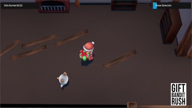 Gift Bandit Rush is a portable, freeware game where you hate Christmas, so you try to burn present in a home but don't make too much noise and get caught.