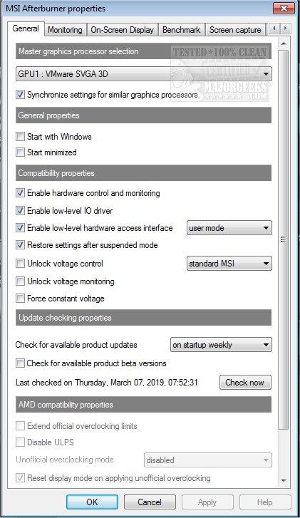 MSI Afterburner is a handy overclocking utility for MSI graphics cards. Main features include GPU/Shader/Memory clock adjustment, advanced fan speed and GPU voltage control.