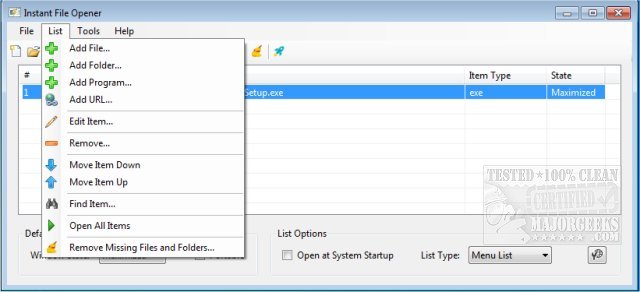 Instant File Opener enables you to compile multiple files, folders, programs and URLs that you wish to open simultaneously.