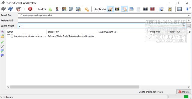 Shortcuts Search And Replace permits you to perform various operations on shortcuts.