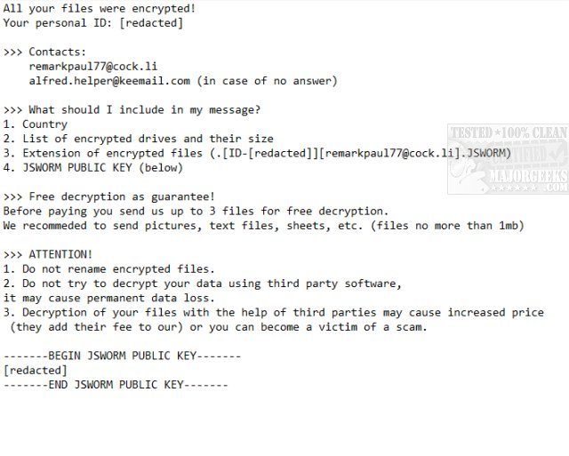 Emsisoft Decrypter for JSWorm 2.0 allows you to decrypt files encrypted by the JSWorm ransomware strain.