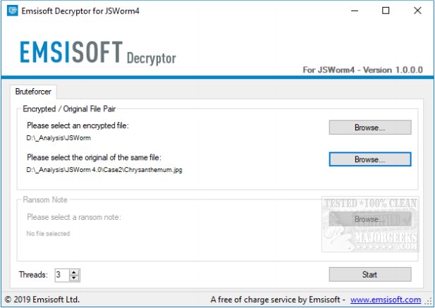 Emsisoft Decrypter for JSWorm 4.0 allows you to decrypt files encrypted by the JSWorm ransomware strain.