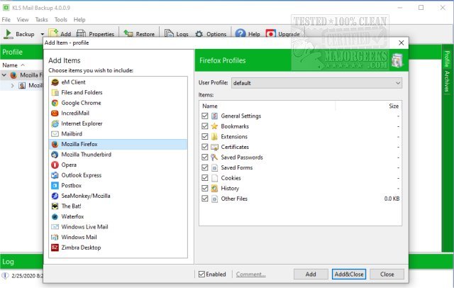 KLS Mail Backup is a straightforward app that permits the backup and restoration of most of the popular email clients, including Mozilla Firefox, Thunderbird, Windows Mail, Outlook Express, among others.