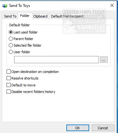 Send To Toys Control Panel Applet allows you to manage the Send To system menu content, and configure the various Send To Toys settings.
