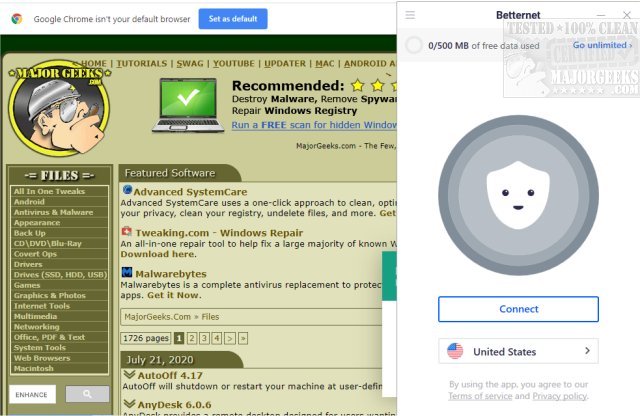 Betternet for Windows is an easy-to-use application that will let you surf the web anonymously through a VPN (Virtual Private Network).
