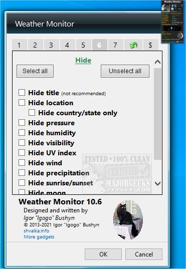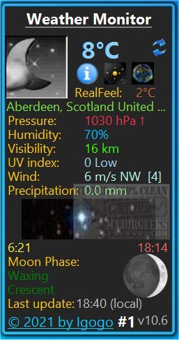 Weather Monitor is a real-time weather gadget for Windows 10.