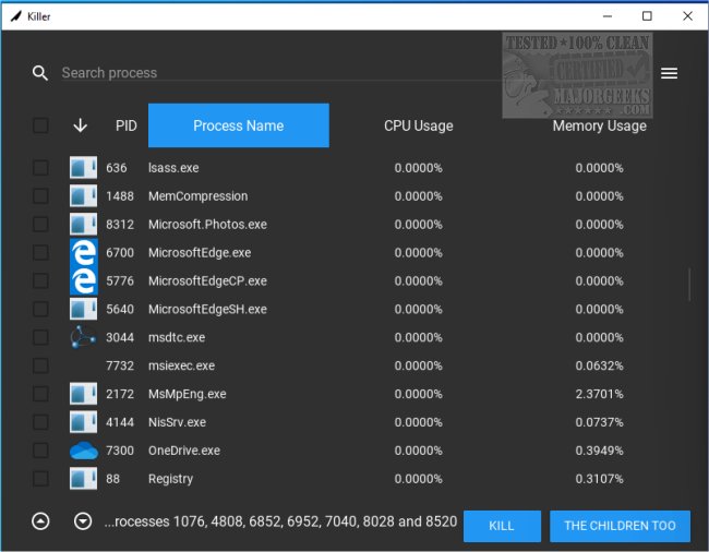 Killer is an Open Source app capable of killing multiple processes at once.