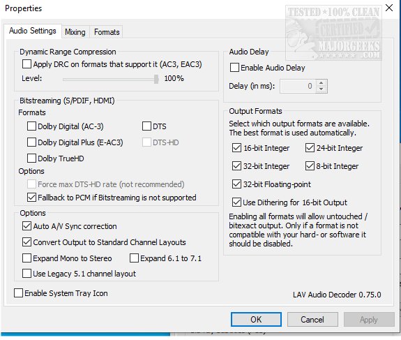 LAVFilters is an Open Source set of DirectShow filters that allow you to play all popular video and audio formats without installing any other codec pack or additional codec or filter.