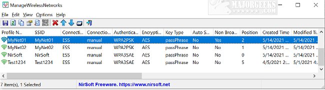 ManageWirelessNetworks provides an alternative to the Windows Manage Wireless Networks (aka Manage Known Networks on Windows 10).