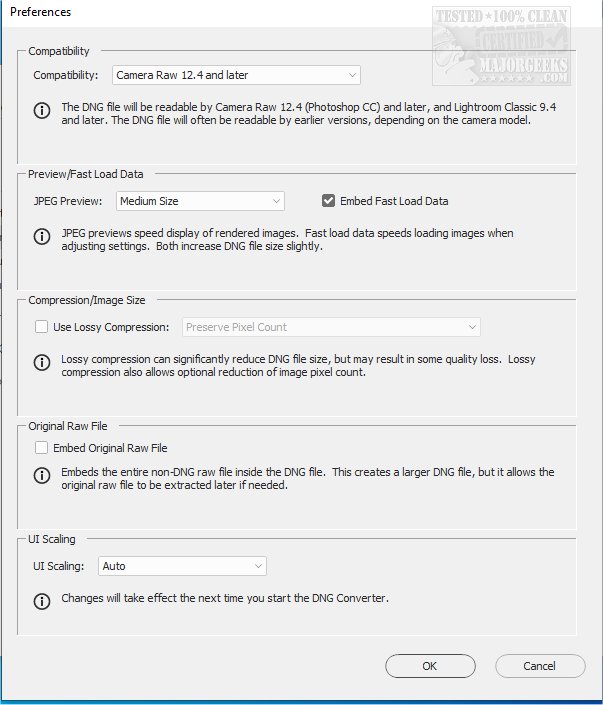 Adobe DNG Converter (Digital Negative) allows camera-specific raw files to be converted to a universal DNG raw file.