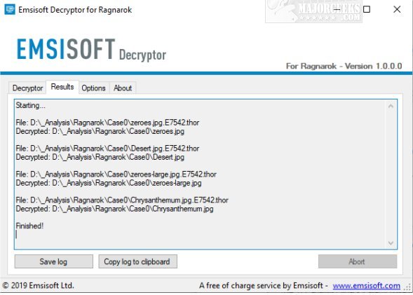 Emsisoft Decryptor for Ragnarok helps to decrypt files held by the Ragnarok ransomware strain.