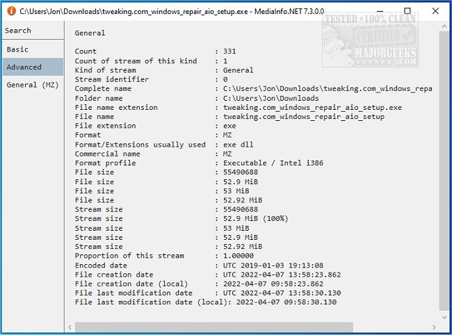 MediaInfo.NET allows you to view a file's data, giving you a more in-depth look than viewing its properties natively.