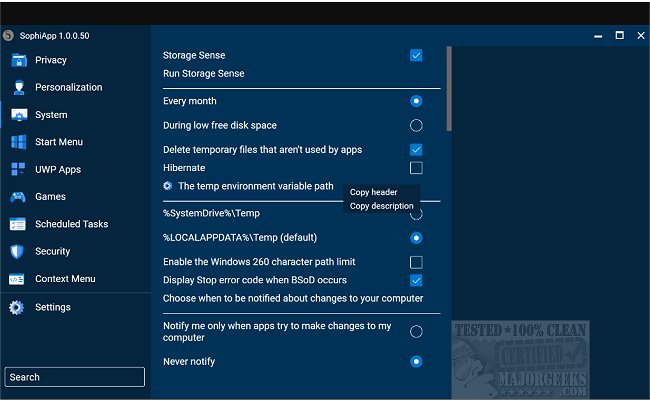 SophiApp is the follow-up to the Sophia Script project, a GUI app for fine-tuning and tweaking Windows 10 & Windows 11.