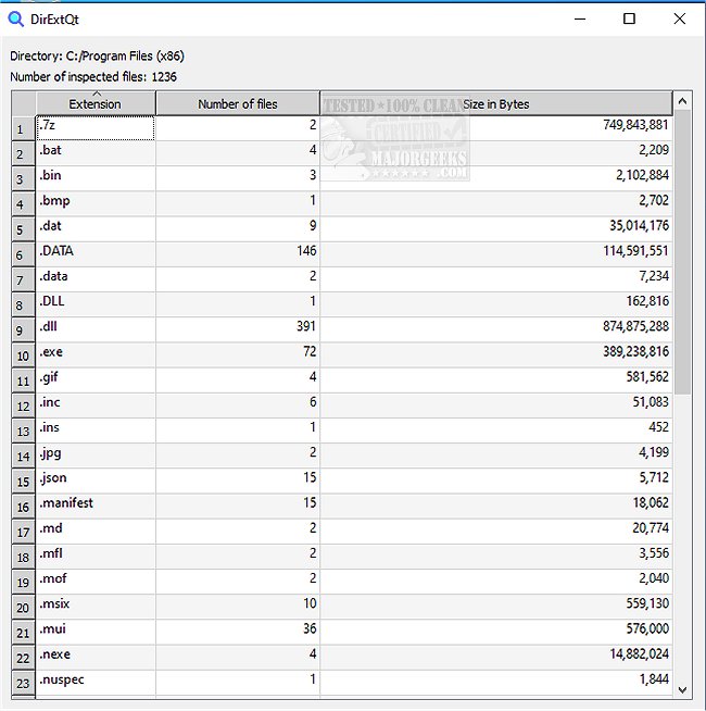 DirExtQt is an Open Source app designed to display an overview of file extensions for all files in a chosen directory and all of its subdirectories.