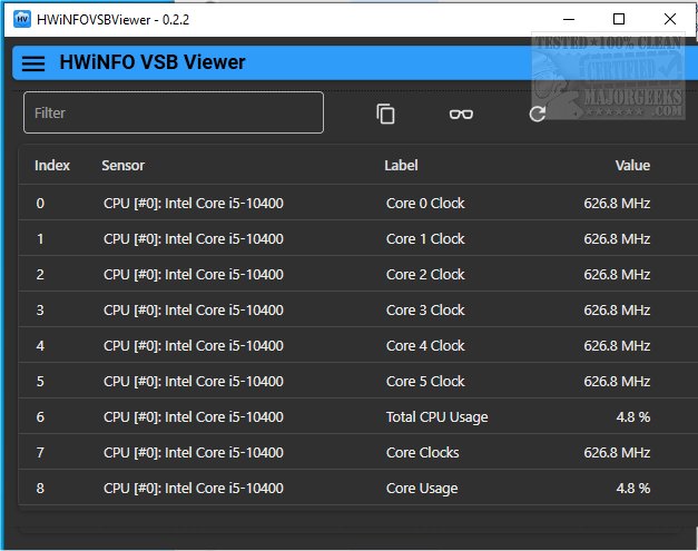 HWiNFO VSB Viewer provides a highly efficient and user-friendly application to read and display the HWiNFO VSB registry values in a convenient grid format.