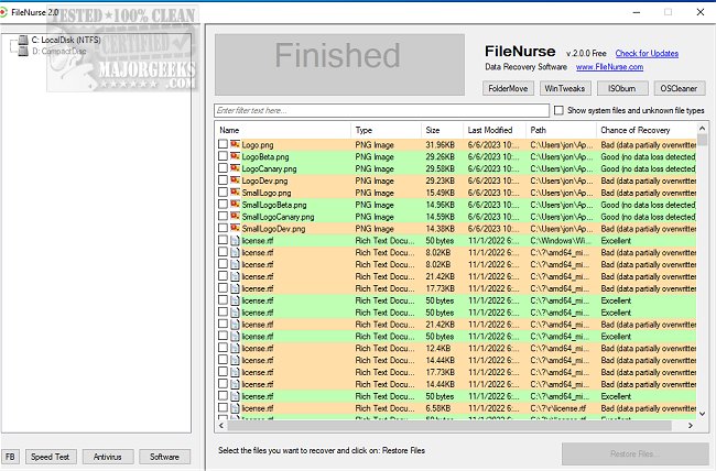 FileNurse can recover all lost or deleted files from your drives in as little as two steps. You can see in real-time if the file is recoverable or damaged.