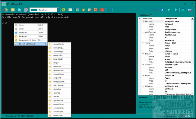 CmdEasy will expand the command line with additional features and allow you to call up commands/features with user-defined names.