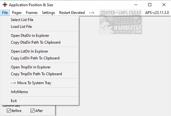 APS (Applications Position and Size) allows you to GET or SET the position and size of an app through a straightforward user interface.