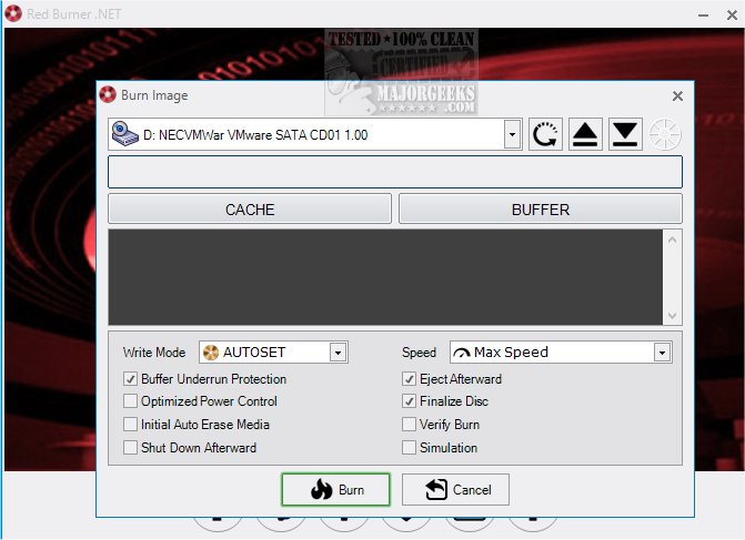 Red Burner .NET is an efficient tool to burn various types of optical discs with added features for creating and working with images and optical drives.