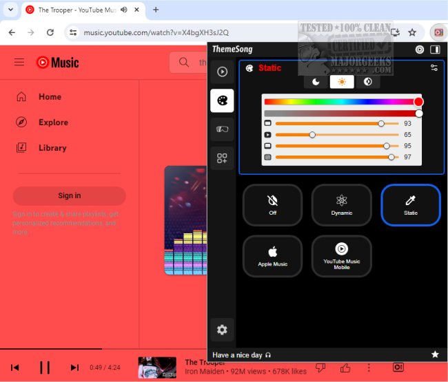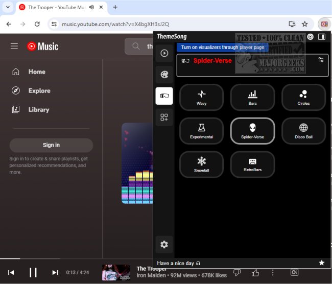 ThemeSong for YouTube Music is an innovative Chrome and Firefox extension/add-on that allows users to enhance their listening experience by providing them with a wide range of themes and visualizers.