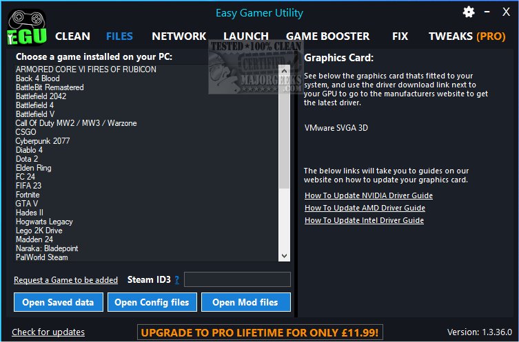 Easy Gamer Utility assists in clearing cache files for your game launchers and graphics cards to help improve overall performance.