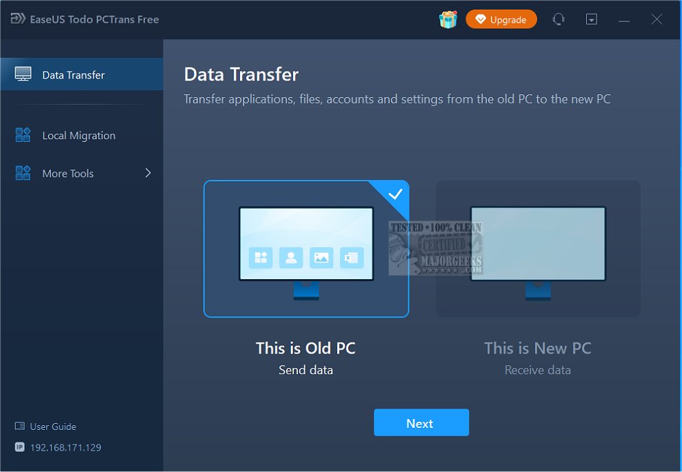 EaseUS Todo PCTrans Free is a reliable backup solution that transfers your important documents, files, folders, photos, music, etc., from an old PC to a new one easily.