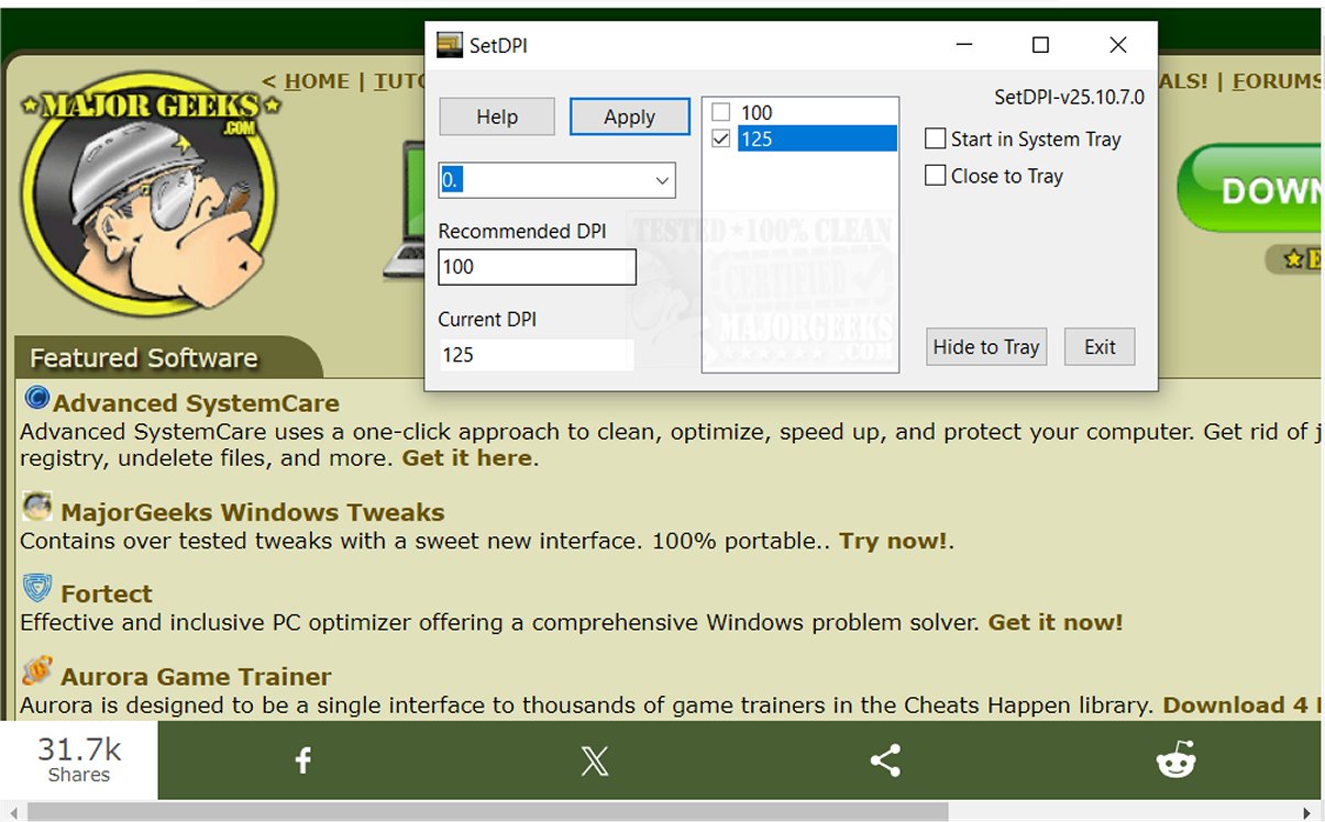 SSetDPI enables you to quickly and efficiently adjust the system's DPI (dots per inch) scaling settings through a straightforward process.