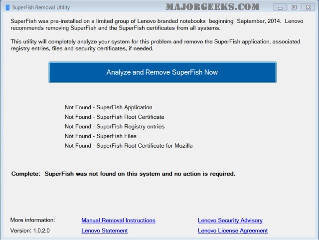 » SuperFish Removal Tool