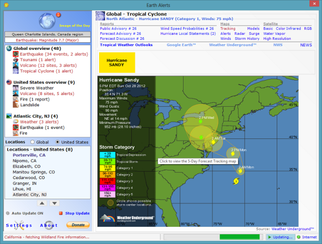 Monitor in near real-time a variety of natural hazard events that are occurring anywhere around the world.