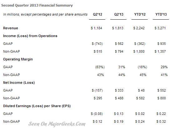 Facebook today reported financial results for the second quarter, which ended June 30, 2013.