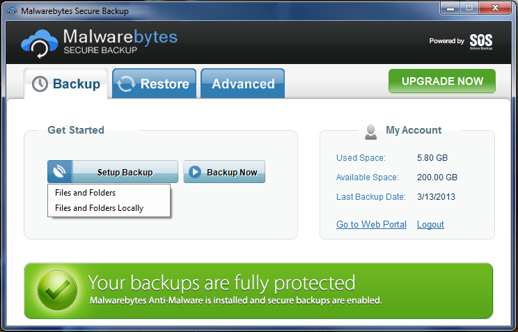 - Malwarebytes Secure Backup, a very secure online backup system that also scans your backups for malware. 50 Gig of backup will cost you $29.99 per year, and it goes up from there.