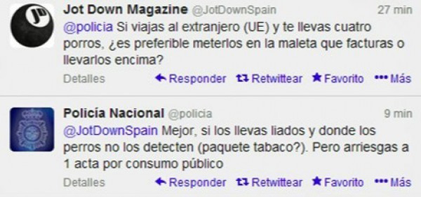The exchange was quickly removed and Carlos Fernández, who is in charge of the twitter account clarified the tweet by saying: "To avoid confusion, the possession or consumption of drugs in public areas is subject to a fine."