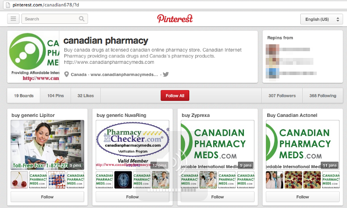 Dubious online pharmaceutical companies use and abuse Pinterest to promote their ‘products’:
